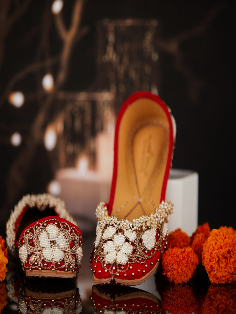 Red as a colour represents joy or happiness or can also represent a festive time. The Red Piexel Punabi Juttis are gender oriented footwear and may look more appropriate with traditional Indian clothes including saree, lehenga and salwar kameez and energises the dress.