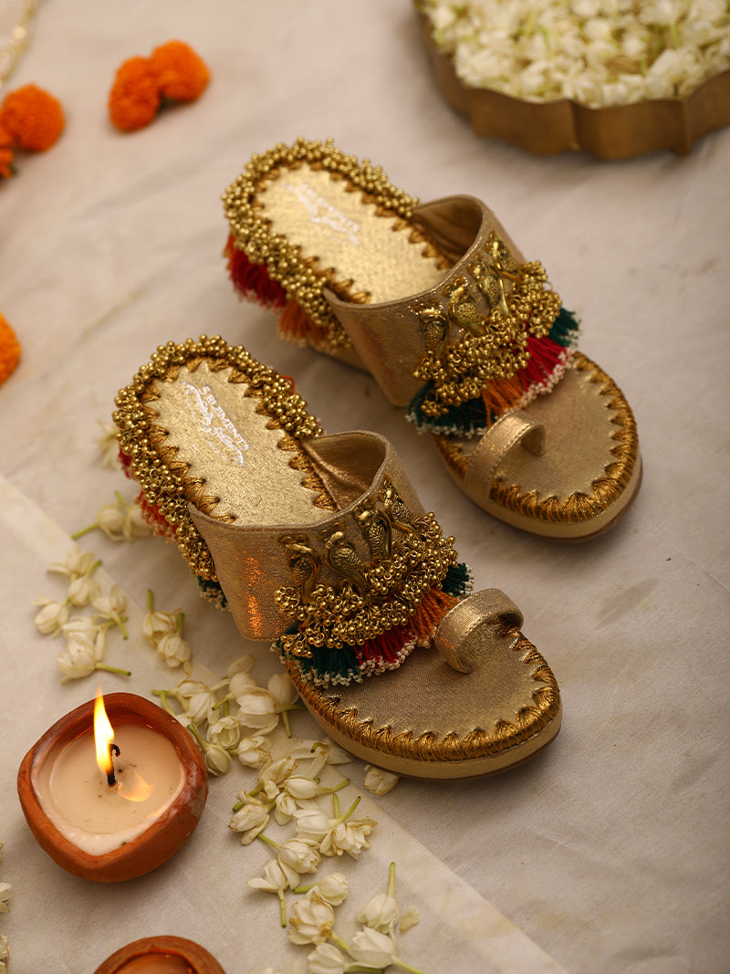 - Golden Juttis:These pair beautifully with red, maroon, or green lehengas, adding an opulent touch to your attire.