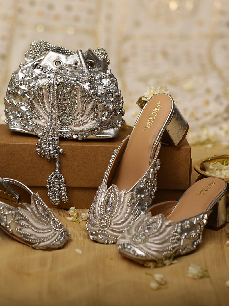 - Silver Heels:A versatile choice, silver heels complement pastel lehengas and gowns effortlessly.