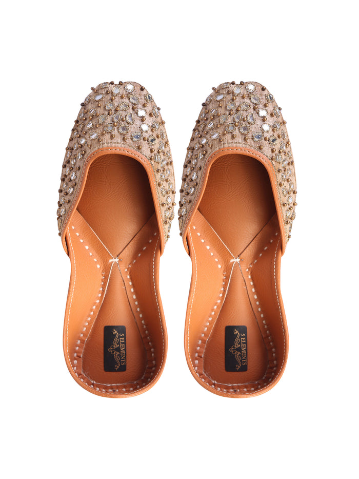 Add a touch of glamor and reflection to your ensemble with mirror work juttis from 5 Elements. The play of light and sparkle from mirrors creates a magical effect, making these juttis a perfect choice for special occasions. Start the new year on a dazzling note with mirror work juttis that exude radiance and sophistication. Each pair is a masterpiece, reflecting the brand's commitment to elegance and style.