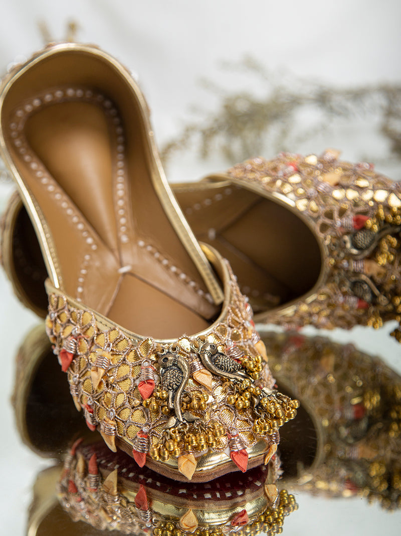 Golden juttis are the epitome of luxury and elegance, making them a must-have for any festive occasion. Gold is a color that symbolizes wealth, prosperity, and celebration, making it a popular choice for weddings and grand festivities. At 5 Elements, our golden juttis are crafted with intricate zari work, sequins, and beads, making them a regal addition to your festive wardrobe.