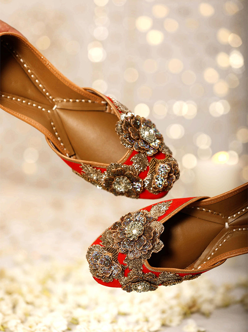 Golden Juttis, such as the Golden Lotus Punjabi Jutti, add a royal and traditional vibe to bridal and festive outfits. Their delicate zari work and bead detailing give them a luxurious feel, making them perfect for women who love to celebrate special occasions in style. For those seeking something more versatile, silver juttis like the Silver Lotus Punjabi Jutti can complement both vibrant sarees and soft pastel lehengas.